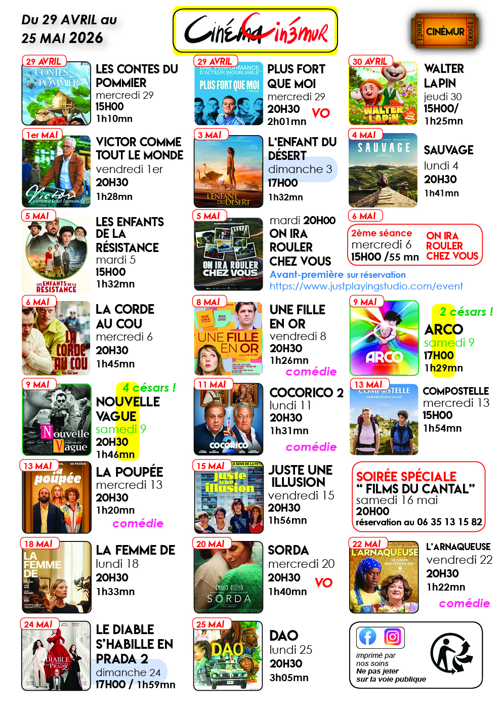 Programme Cinemur Mai 2026